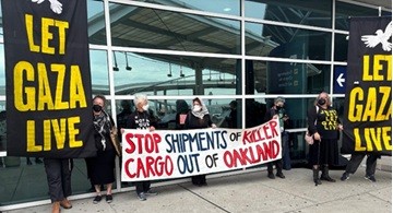 International Jewish Anti-Zionist Network (IJAN) protest with Jewish Voice for Peace (JVP) at Oakland airport on 24 Sep 2025 (during Jewish high holidays). Protests at Oakland airport have erupted after it came out that at least 280 arms shipments have been shipped to Israel’s Nevatim Airbase out of this commercial airport.